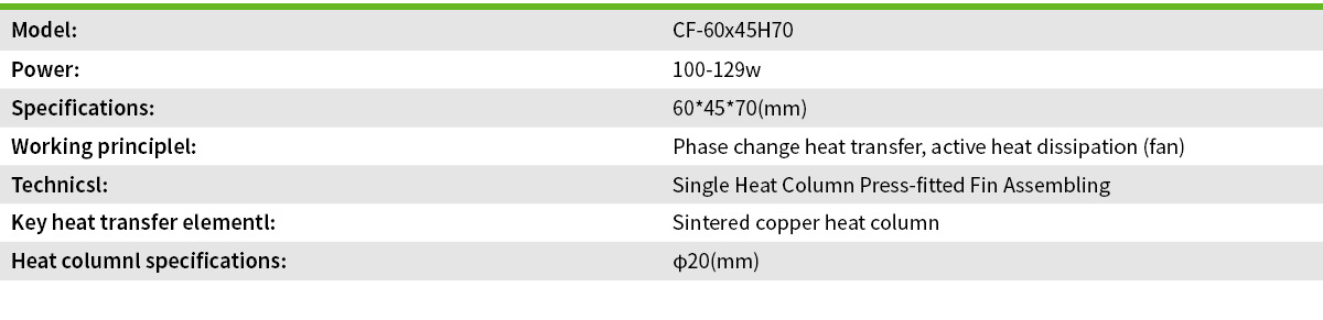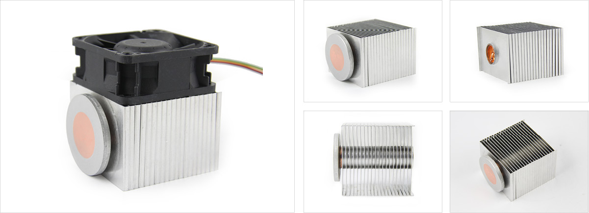 Working principlel: Phase change heat transfer, active heat dissipation (fan)