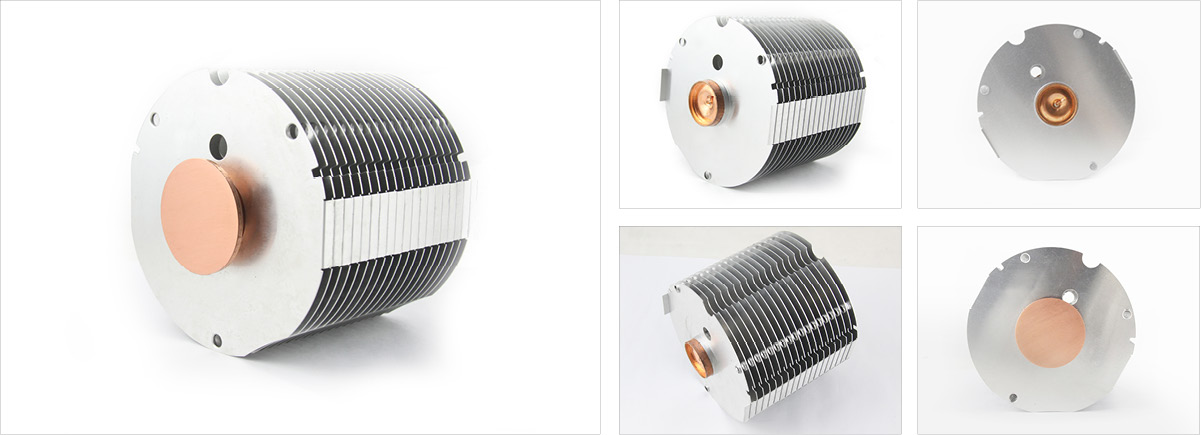 What materials are used in the 120-155W stage lights/photography lights/video lights heat sink? This heat sink features a sintered copper heat column applying the phase-change principle to achieve superior thermal conductivity. The press-fitted fin assembly ensures stability, making the 120-155W stage lights/photography lights/video lights heat sink a reliable solution for efficient heat dissipation.