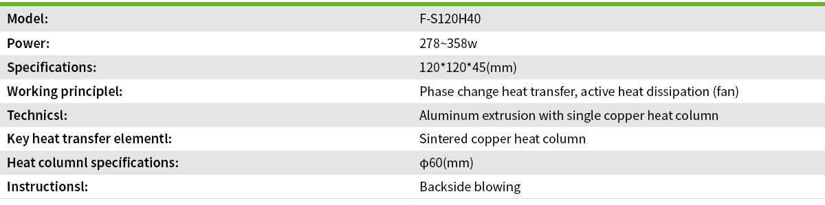 Working principlel: Phase change heat transfer, active heat dissipation (fan)