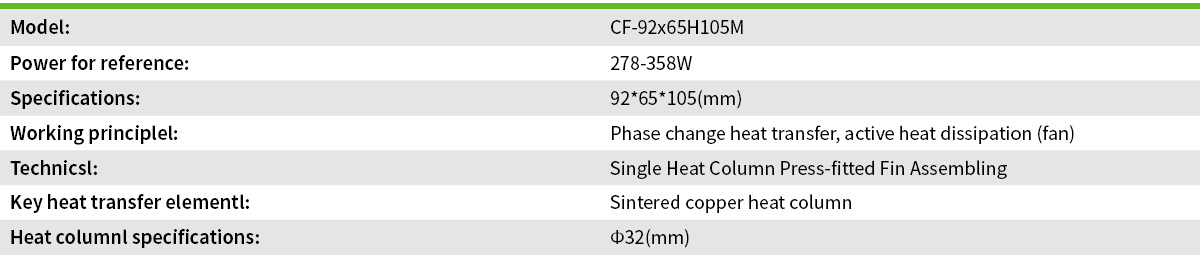 Working principlel: Phase change heat transfer, active heat dissipation (fan)