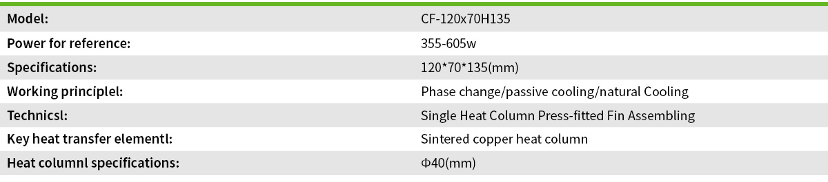 Constructed using premium-grade copper, this heat sink incorporates a phase-change heat pipe system that significantly improves heat transfer efficiency. The patented single heat column press-fitted fin assembly and sintered copper heat column, with a diameter of Φ40 mm, facilitate rapid and uniform dispersion of thermal energy. Measuring 120 × 70 × 135 mm, the heat sink supports power ranges from 355 to 605W, relevant for high-power photography lights. The passive cooling mechanism eliminates the need for active cooling components, reducing risk of mechanical failure while maintaining consistent operating temperatures essential for electronic component longevity.
